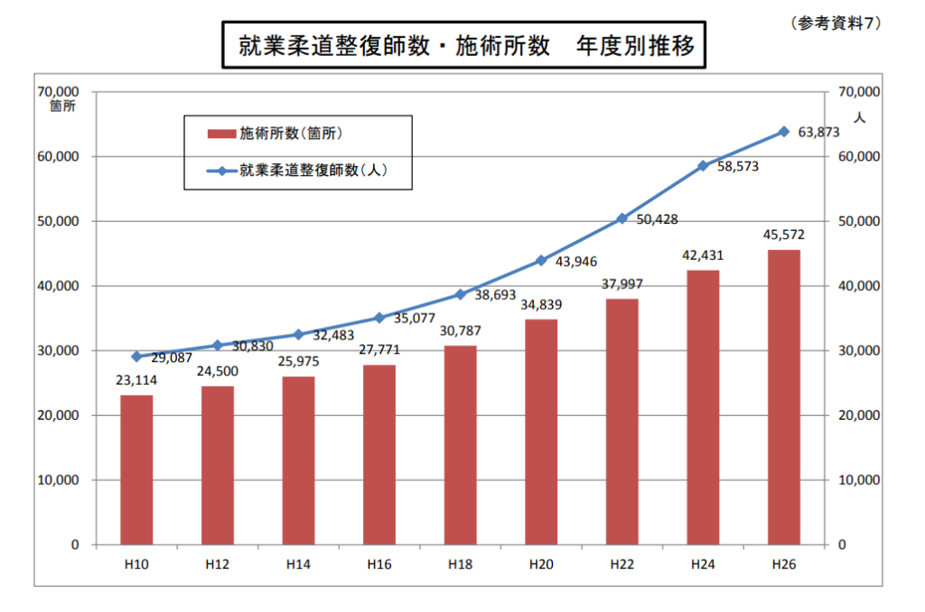 先ほど、整骨院が右肩上がりで増え続けているというお話をしました。