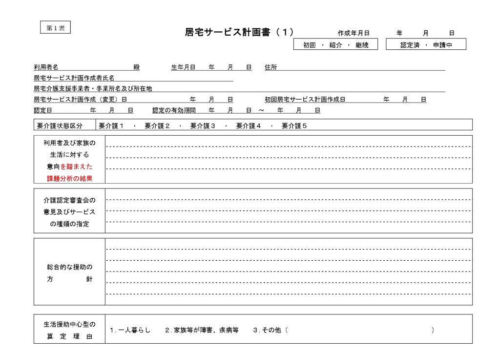 このケアプランには、利用者の生活実態や既往歴、そして介護施設の利用目的がすべて記入されています。